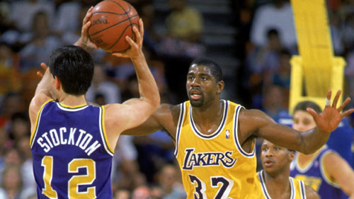 作为五大数据两项第一的组织后卫,斯托克顿一直被拿来和魔术师比较,他们两人都是NBA历史数一数二的控卫。魔术师一登上NBA联盟就是天之骄子,菜鸟赛季就带队夺冠,荣膺FMVP,魔术师的NBA生涯荣誉满满,地位也非常之高。相反,斯托克顿因为一个总冠军也没有,空有两项历史第一的数据,他很多时候都是比不过魔术师的人气和地位。